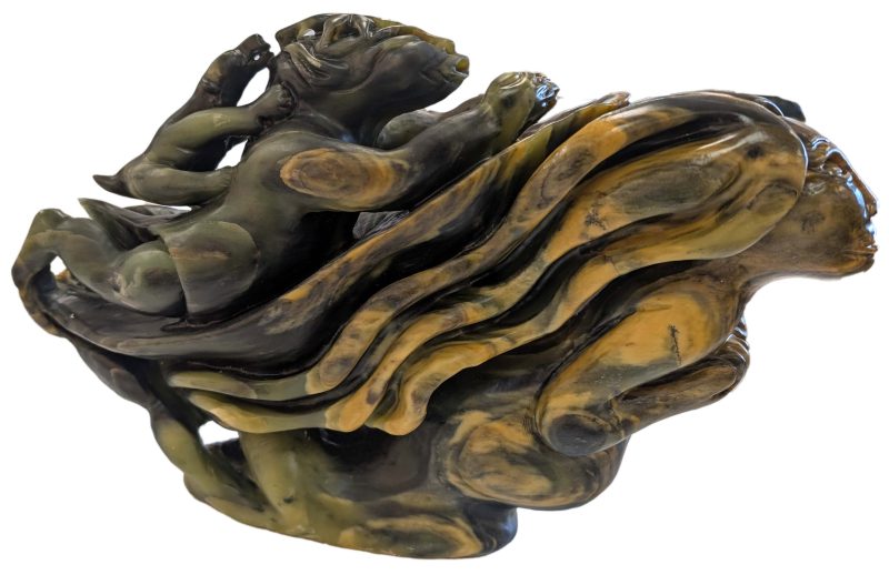 Eventually, Jonasie left his post as harbormaster and emigrated to Canada with his wife and children. Here, several important factors intervened to change the direction in his life. In Canada, Jonasie soon perceived a growing market for Inuit art and decided to import some pieces from Greenland. Some of these pieces were damaged in transit and Jonasie set about repairing them himself. He soon realized he had a talent not only for repair work but also a remarkable talent for carving. However, getting soapstone at a reasonable cost was a problem. While on a hunting trip, he found his source of stone, and ultimately claimed his own soapstone quarry.