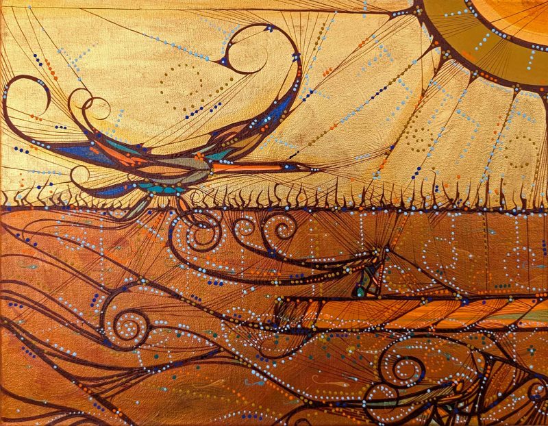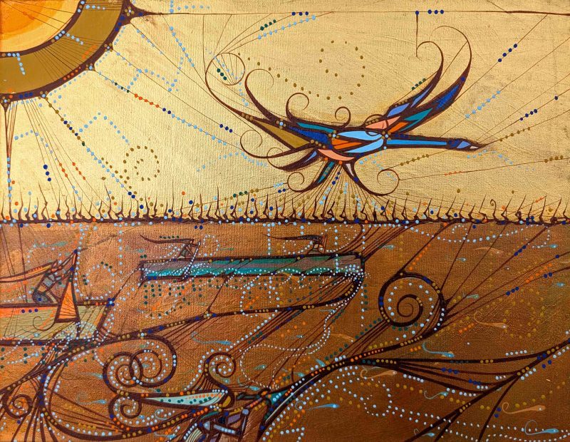 Treaties will last “as long as the grass grows and the river flows”. Those words are visually represented in my paintings in acknowledgement of my ancestors.
